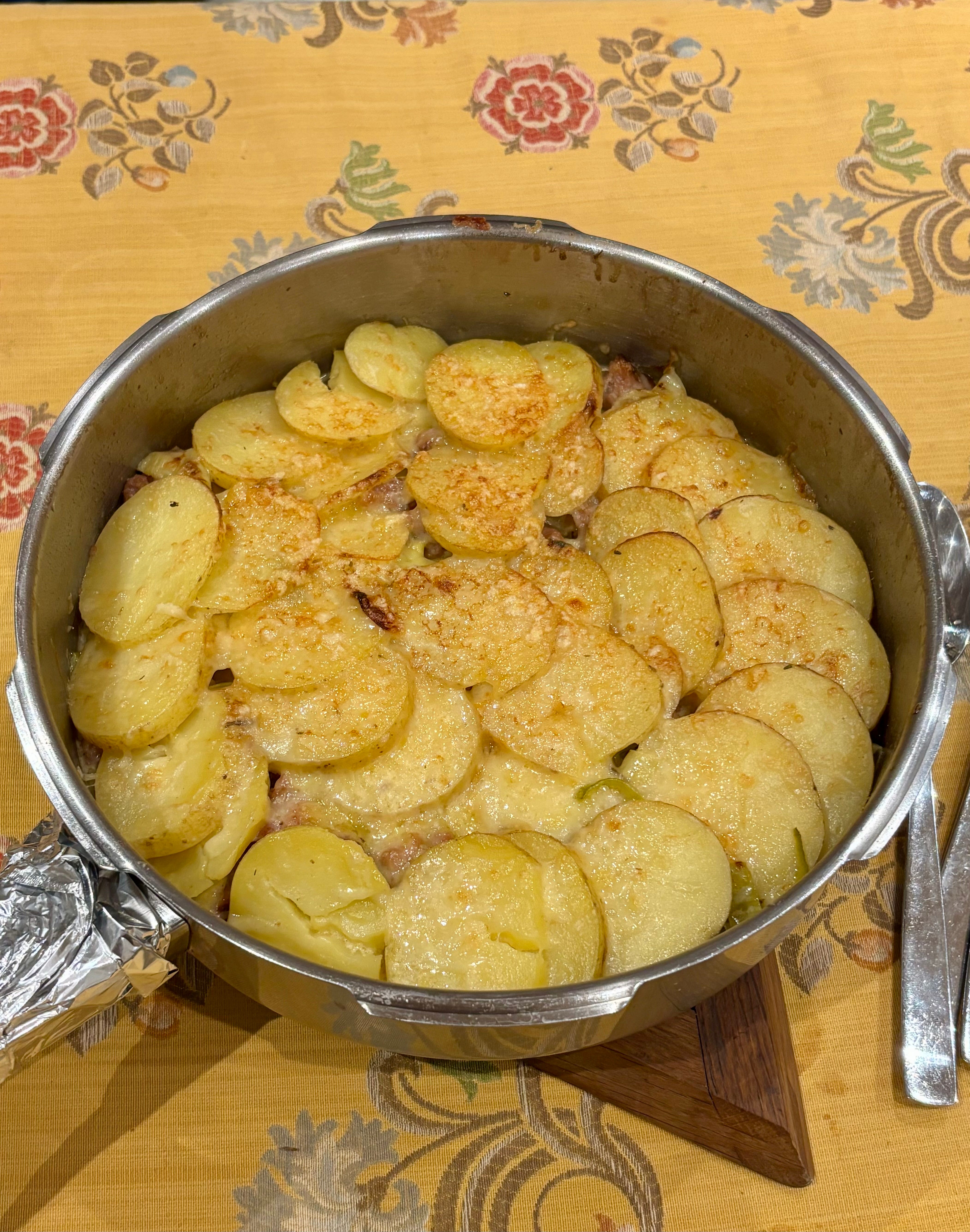 A Gratin of Sausage, Potato, Leek and Celeriac